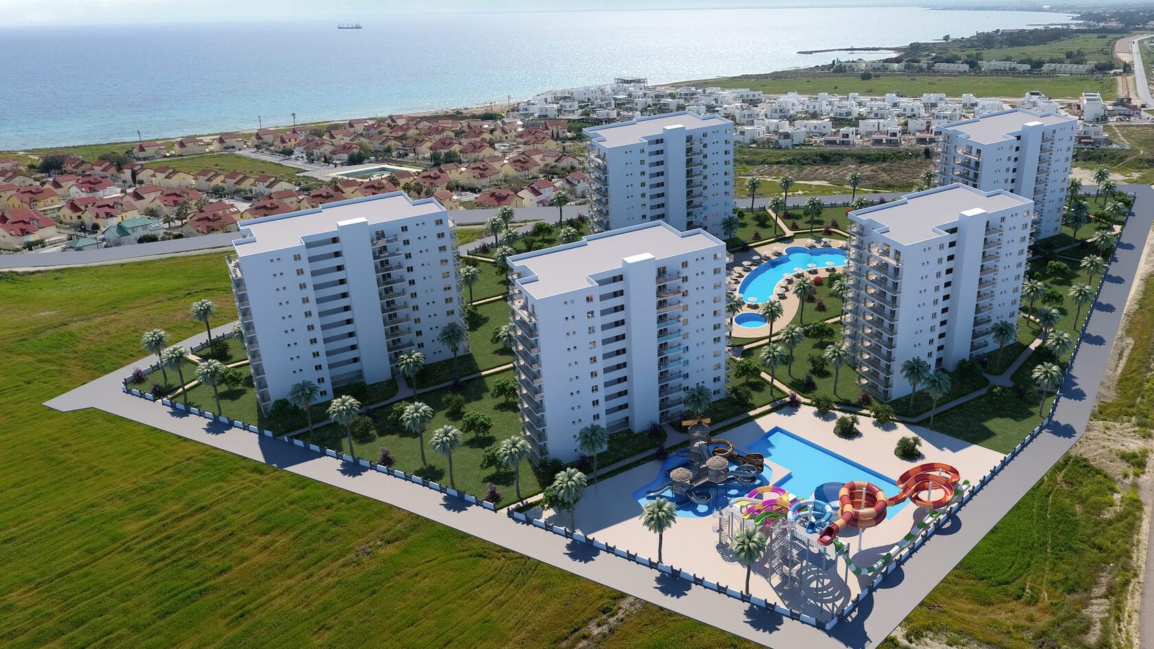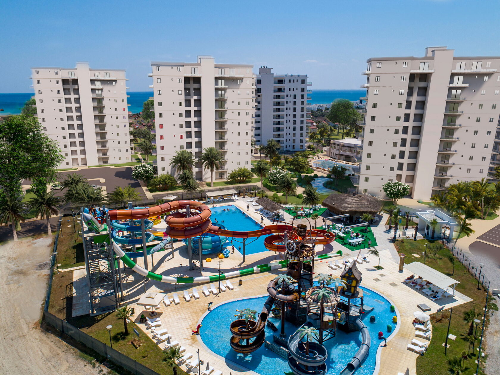 Caesar Blue – это уникальный проект, который предлагает вам инфраструктуру курорта. Комплекс расположен всего в 300 метрах от прекрасного песчаного пляжа и включает огромный аквапарк площадью 400 м² с горками и аттракционами для всех возрастов.